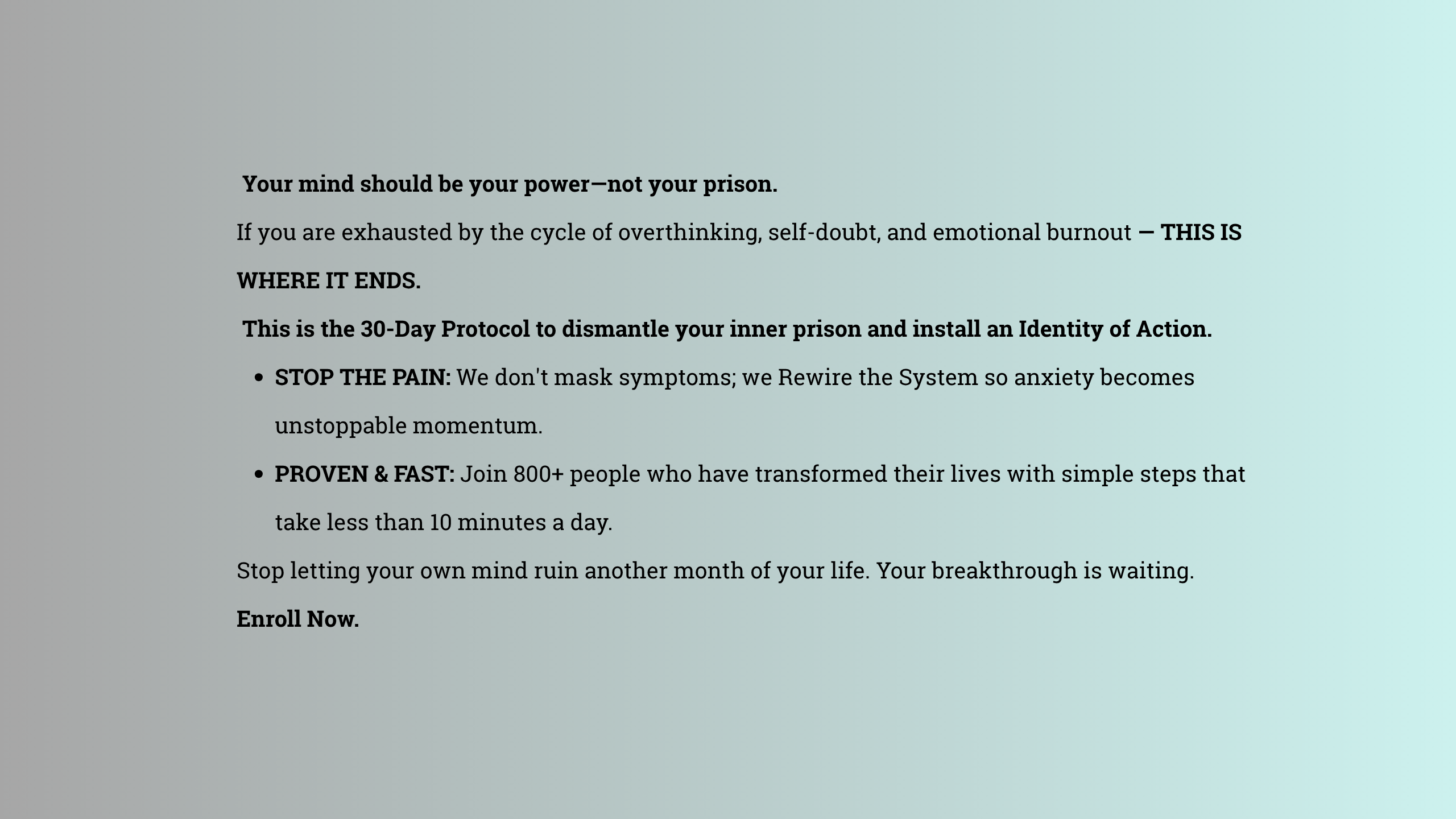 We give you the precise blueprint to turn that pain into unstoppable power, one simple 10-minute step at a time.