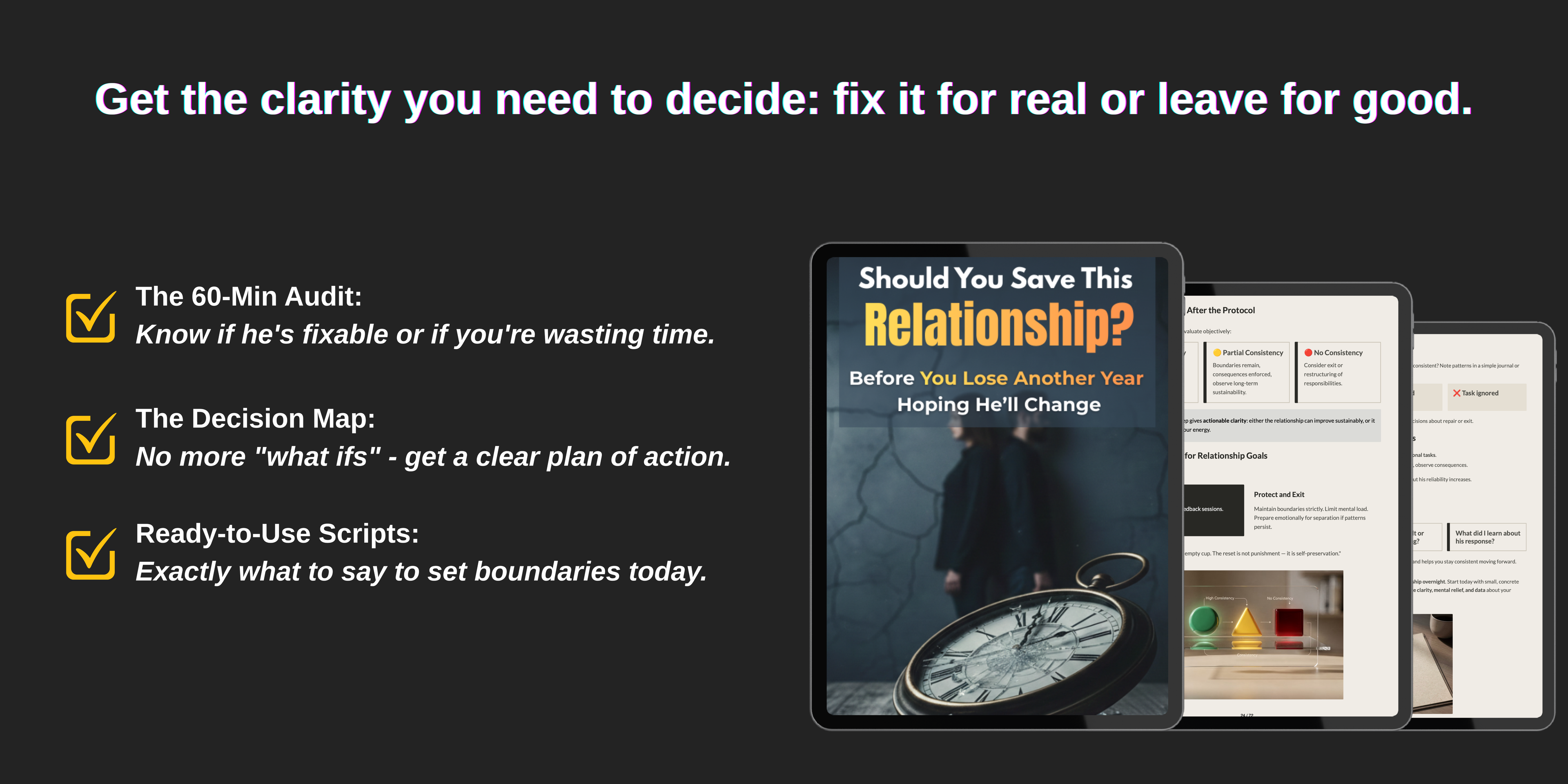 - Dual Action Roadmaps: Precise, step-by-step instructions for either rebuilding intimacy or executing a confident exit.