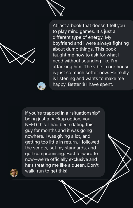 - The 21-Day Framework: A step-by-step roadmap to shifting the power dynamics without forcing, chasing, or proving your worth.